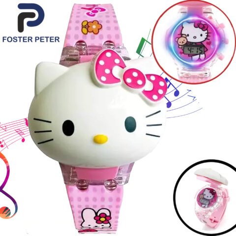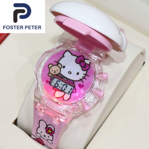Cute Pink Bunny Character Kids’ Wrist watch with Light and Music