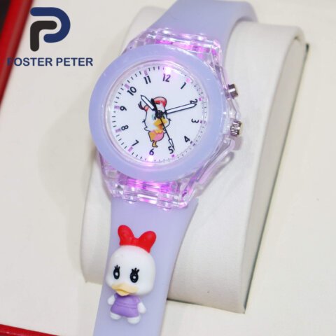Glowing Blue Cartoon Kids’ Watch with LED Light-Up Strap